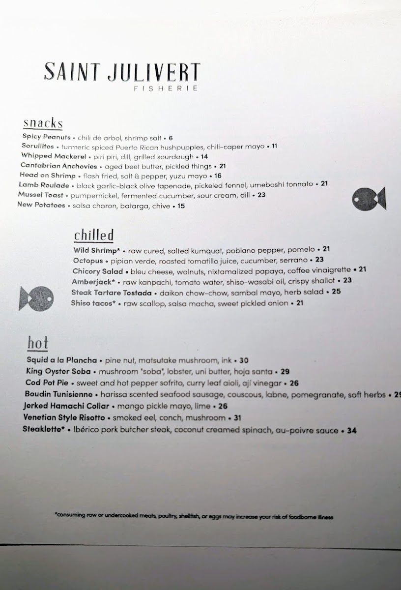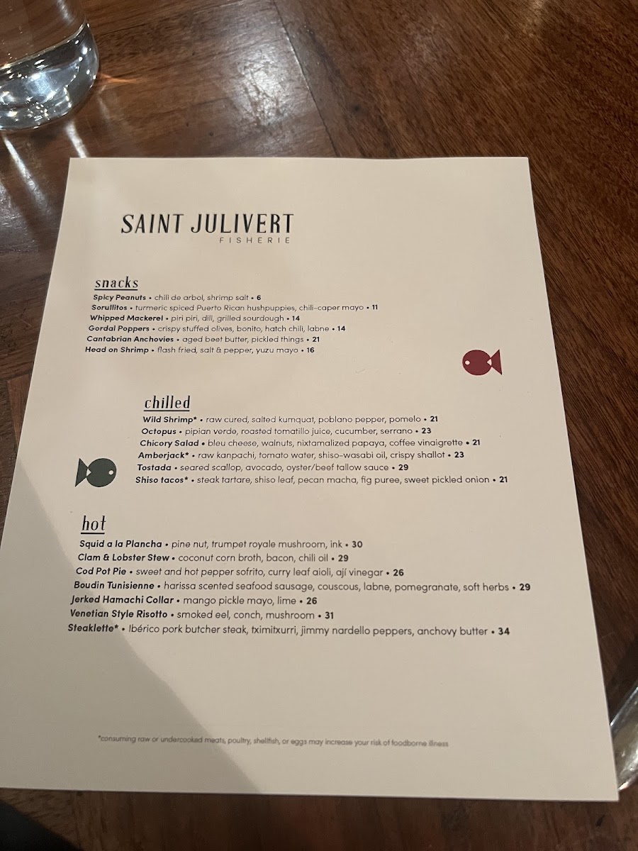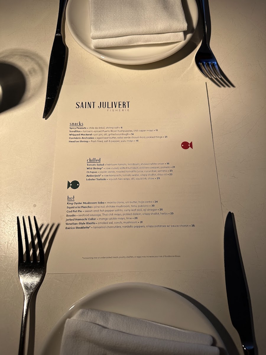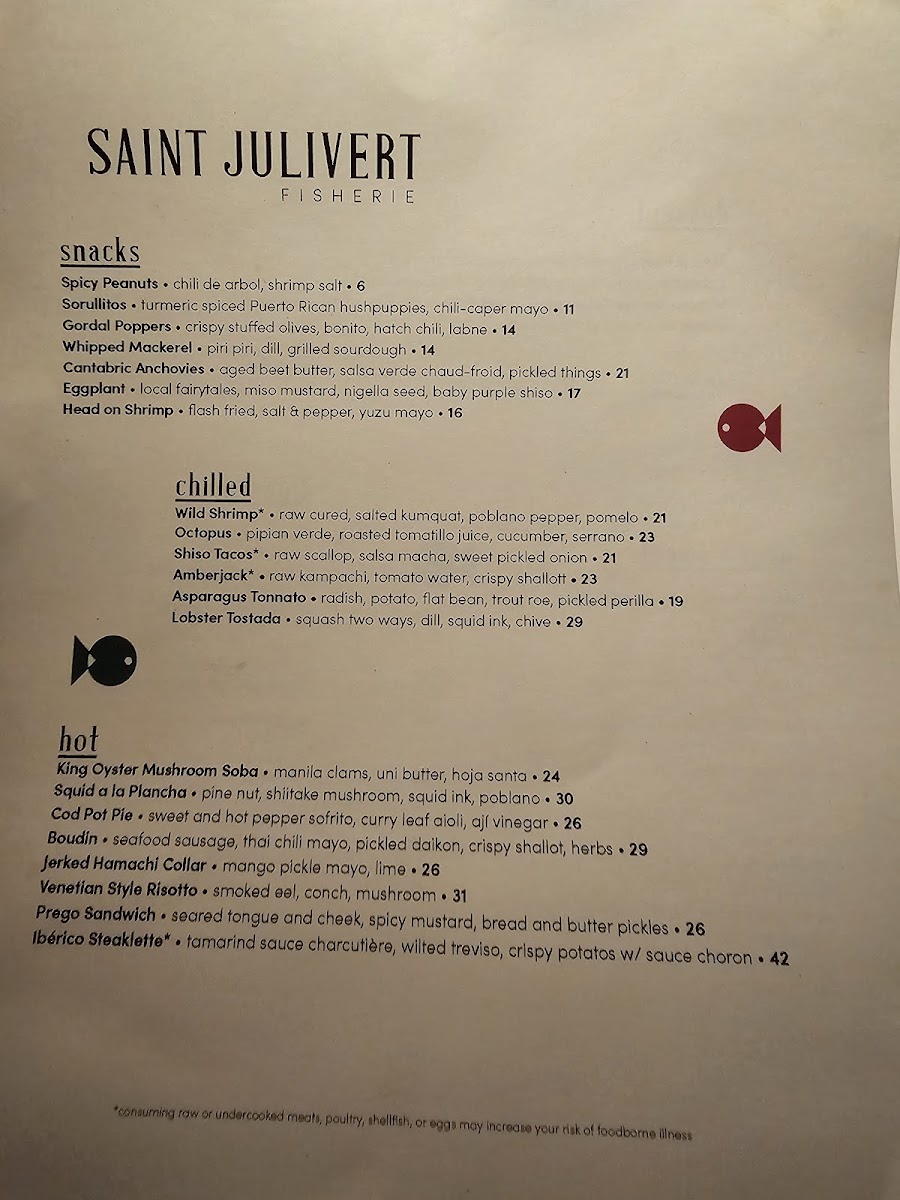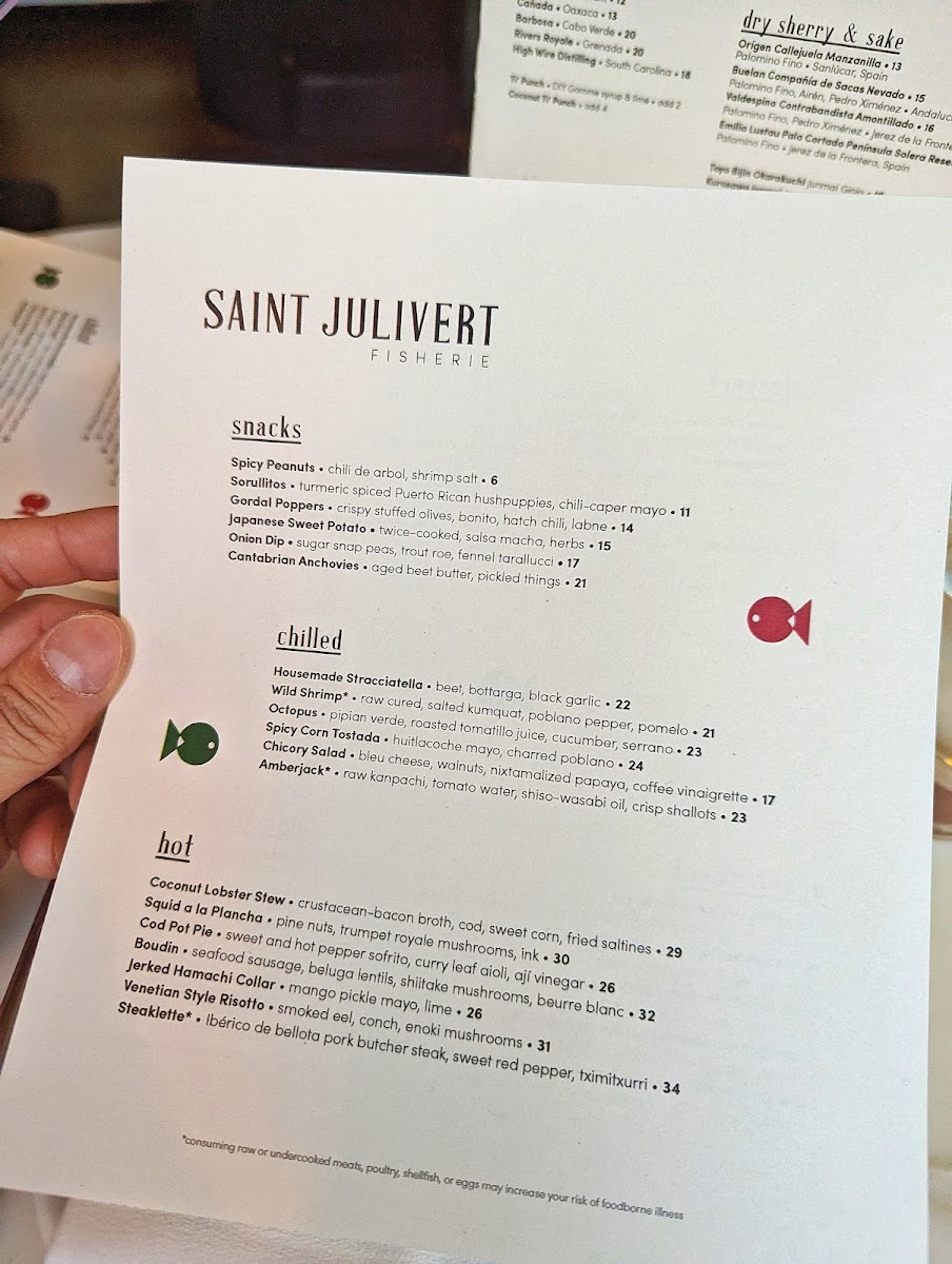 Standout dishes include the unique barnacles and jaw-dropping shiso leaf wrapped raw seafood, admired for their presentation and taste. The restaurant’s atmosphere feels intimate, resembling a chef’s kitchen where you witness artistry in each dish's preparation. The attentive service guides you through shared plates, ensuring a memorable dining experience. Be sure to save room for their enchanting desserts, like the pineapple layer that pairs beautifully with ice cream. For a culinary journey by the water, Saint Julivert is a must-visit.